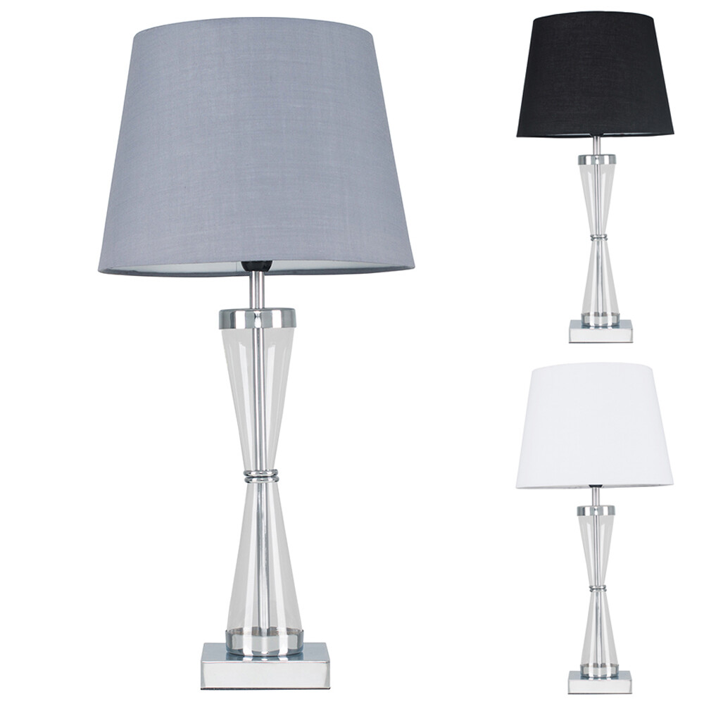 - Material: Metal / Glass / Fabric Lampshades Finish: Chrome / Clear